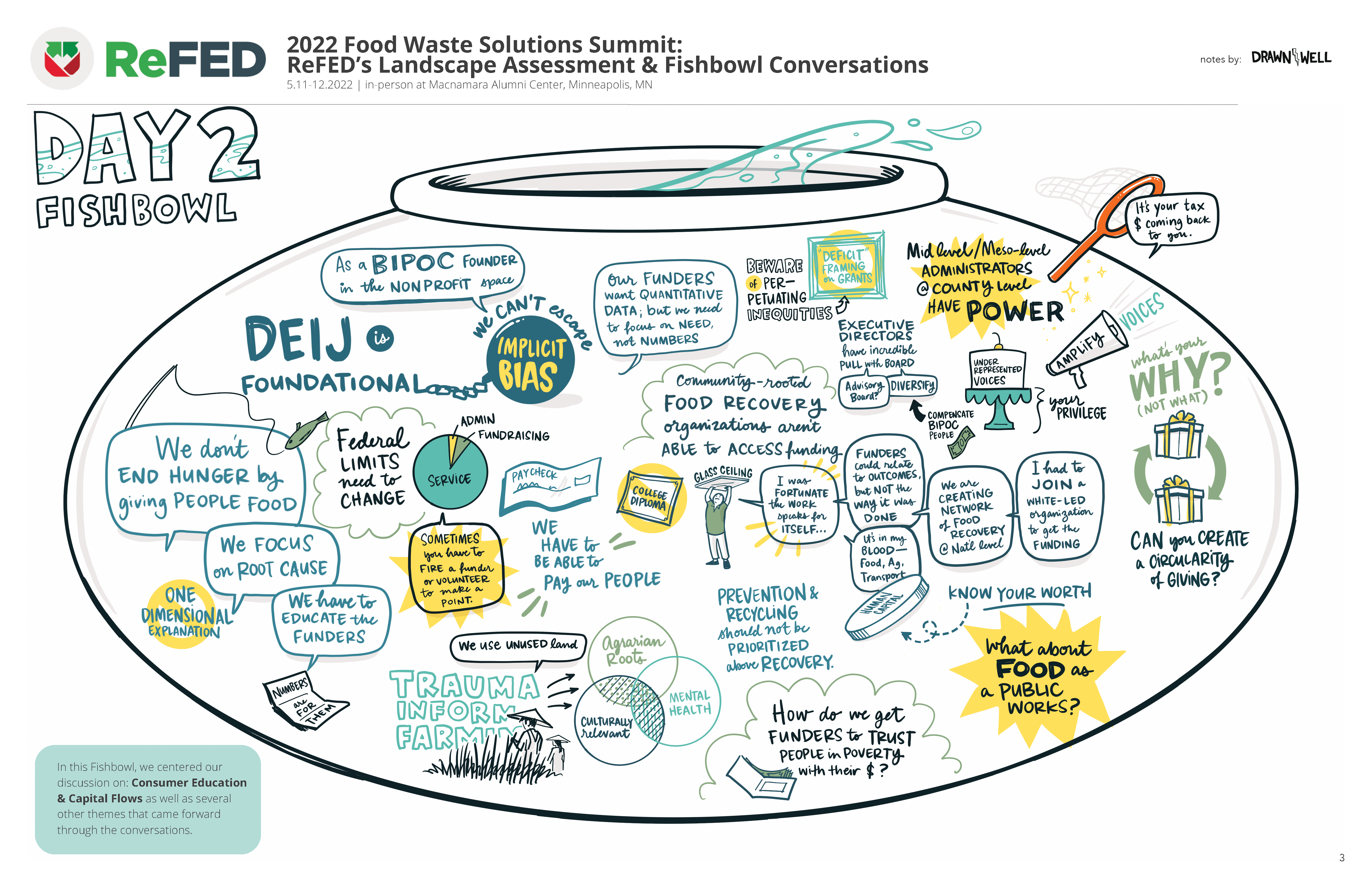 The grant also helped us bring on our first-ever full-time DEIJ Fellow, Nyree Hall, to develop a Landscape Assessment to examine the intersection of DEIJ and the food waste sector that provides insights into what work is currently happening, who is involved, where there are gaps, where there are opportunities, and where there are potential inadvertent consequences. Initial research results were introduced at the 2022 Food Waste Solutions Summit this past May, and a full report will be shared in the next couple of months for public feedback before the final report is released.